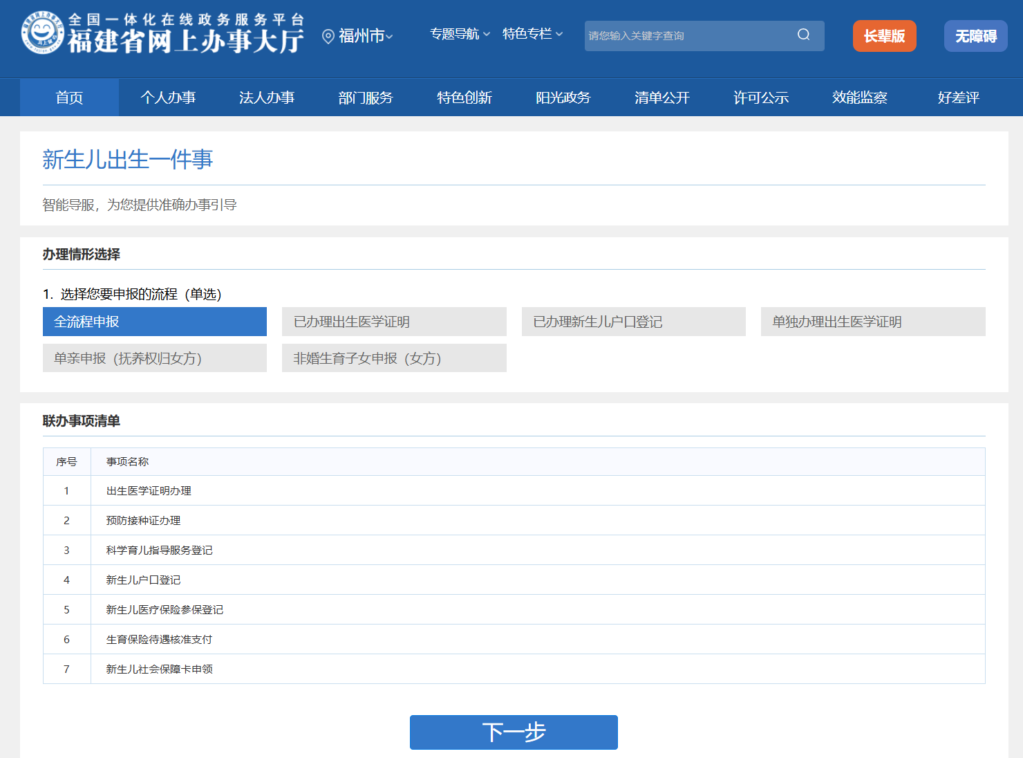 2。线年内,还未打点“出生医学证明”及户籍登记的重生儿,曾经想好宝宝名字,可登录闽政通APP或福建省网上处事大厅,通过“重生儿出生一件事”模块,“一坐式”打点重生儿户籍登记和根基医保参保登记等跨部分事项。