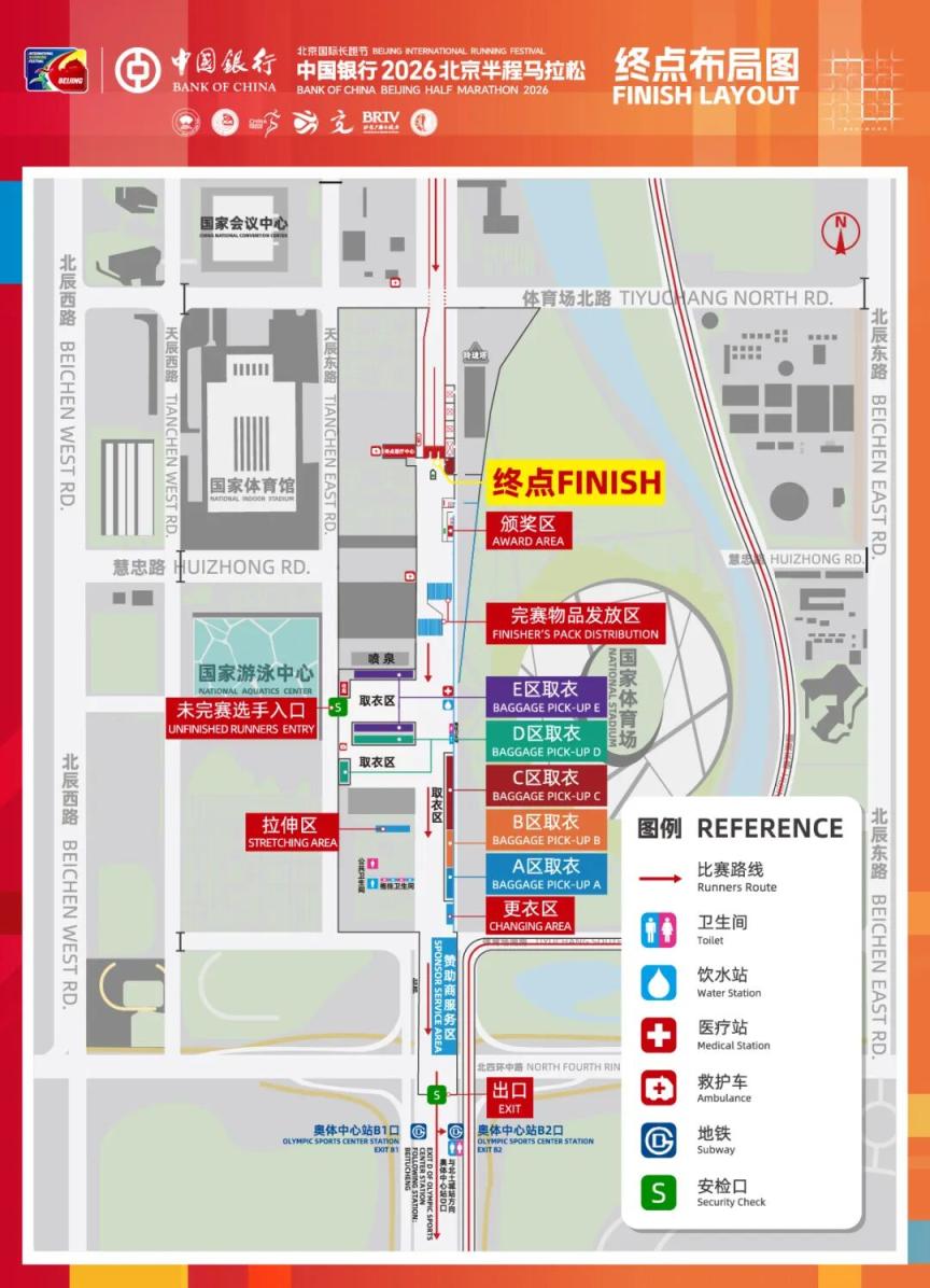 参赛选手沿景不雅大道向南步行至8号线口、D口乘坐地铁分开,或颠末取衣区后向西达到北辰西搭车分开。
